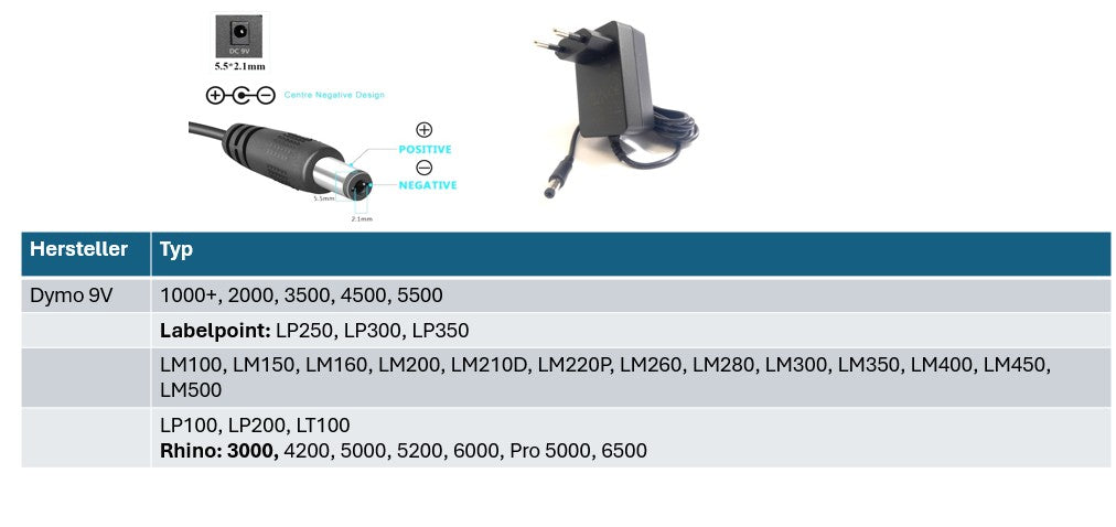 Ausgang: 9V DC / 2A (18W)