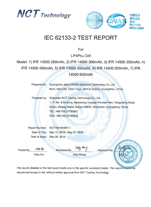 ENERpower battery cell lithium iron phosphate LiFePo4 in format 14500, voltage 3.2V, capacity 600mAh (2C) In 2 variations: 1. With Nuppel (Button-Top) 2. Flat Technical data Chemistry: LiFePo4 Type: 14430 Brand: Enerpower Manufacturer: Vipow Designation: IFR14500-600 Nominal voltage: 3.2V final discharge voltage: 2.5V final charging voltage: 3.6V Maximum charging current:...