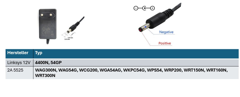 Ausgang-Verbindungsstück: DC-Hohlstecker 5,5mm x 2,5mm