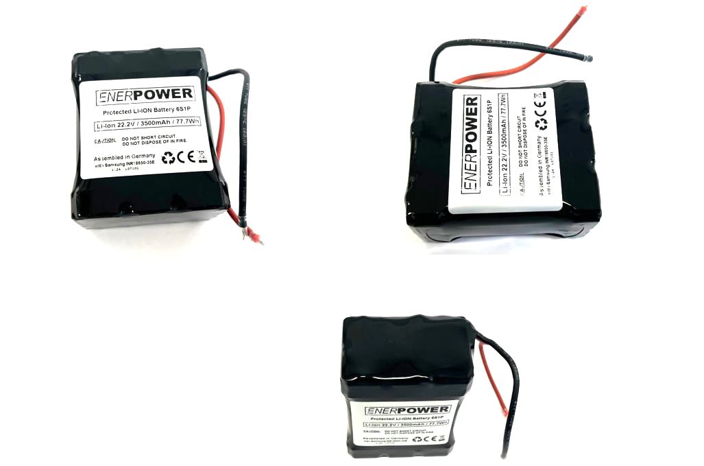 3 x ENERpower Akku Li-Ion im Format 6S1P | Spannung 21,6V-22,2V | Kapazität | 3,4Ah | Schutzschaltung 5A | Kabel offene Enden