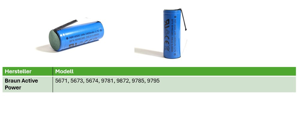 Ersatzakkuzelle Li-Ion 18500 für Braun Rassierer mit Lötfahne