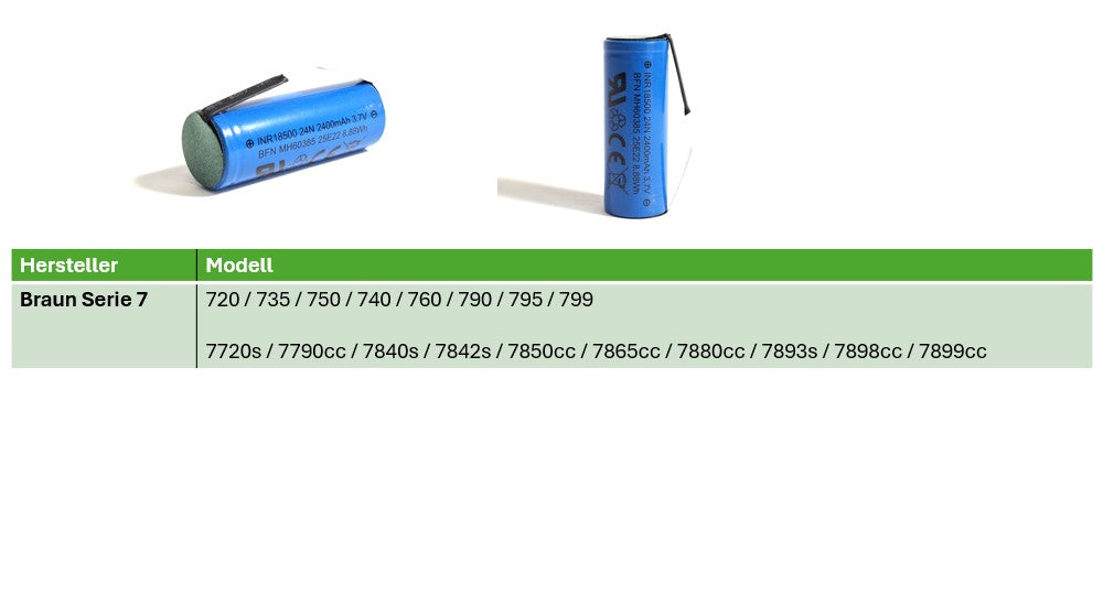Ersatzakkuzelle Li-Ion 18500 für Braun Rassierer mit Lötfahne
