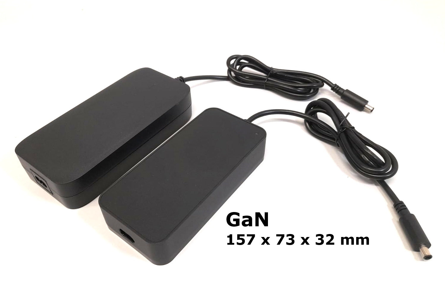 Das GaN-Ladegerät misst 157 x 73 x 32 mm, im Vergleich dazu hat das herkömmliche Ladegerät Abmessungen von 174 x 83 x 37 mm.